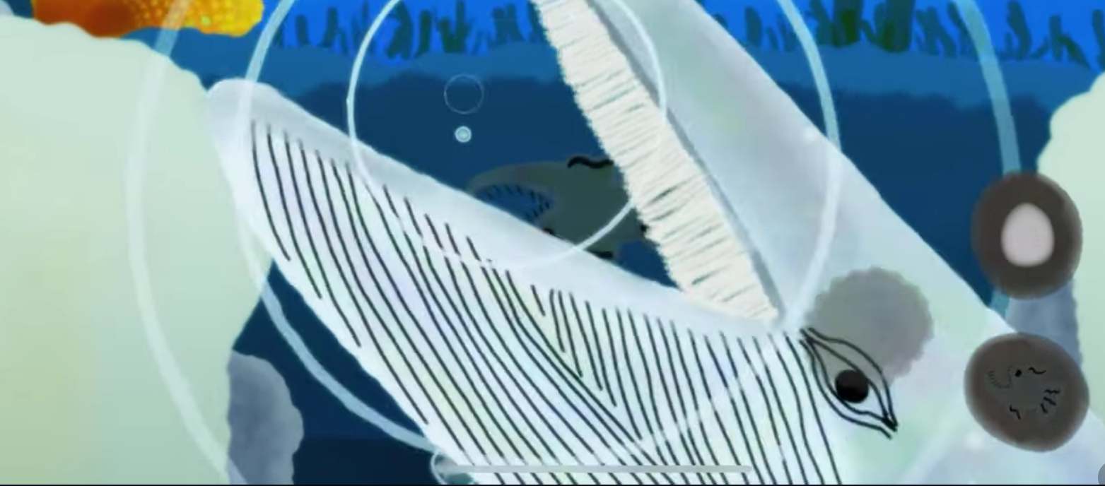 最終的にクジラが出てきて食べられてゲーム終了になります。一回ゲームを終えるのに30分ほどです。ゲームを終えると進化の過程が思い出としてゲーム内に記憶されます。